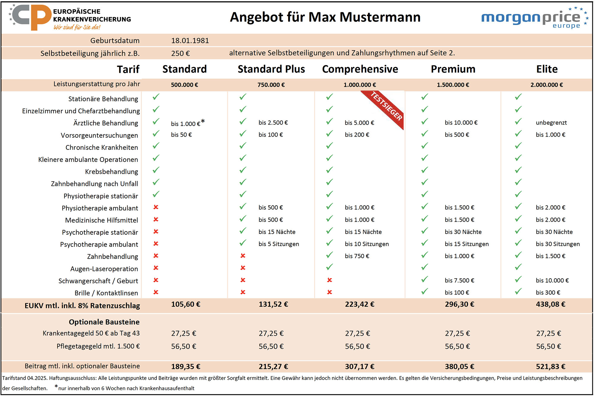 Haftungsausschuss: Eine Gewähr kann nicht übernommen werden. Es gelten die Versicherungsbedingungen, Preise und Leistungsbeschreibungen der Gesellschaft.
