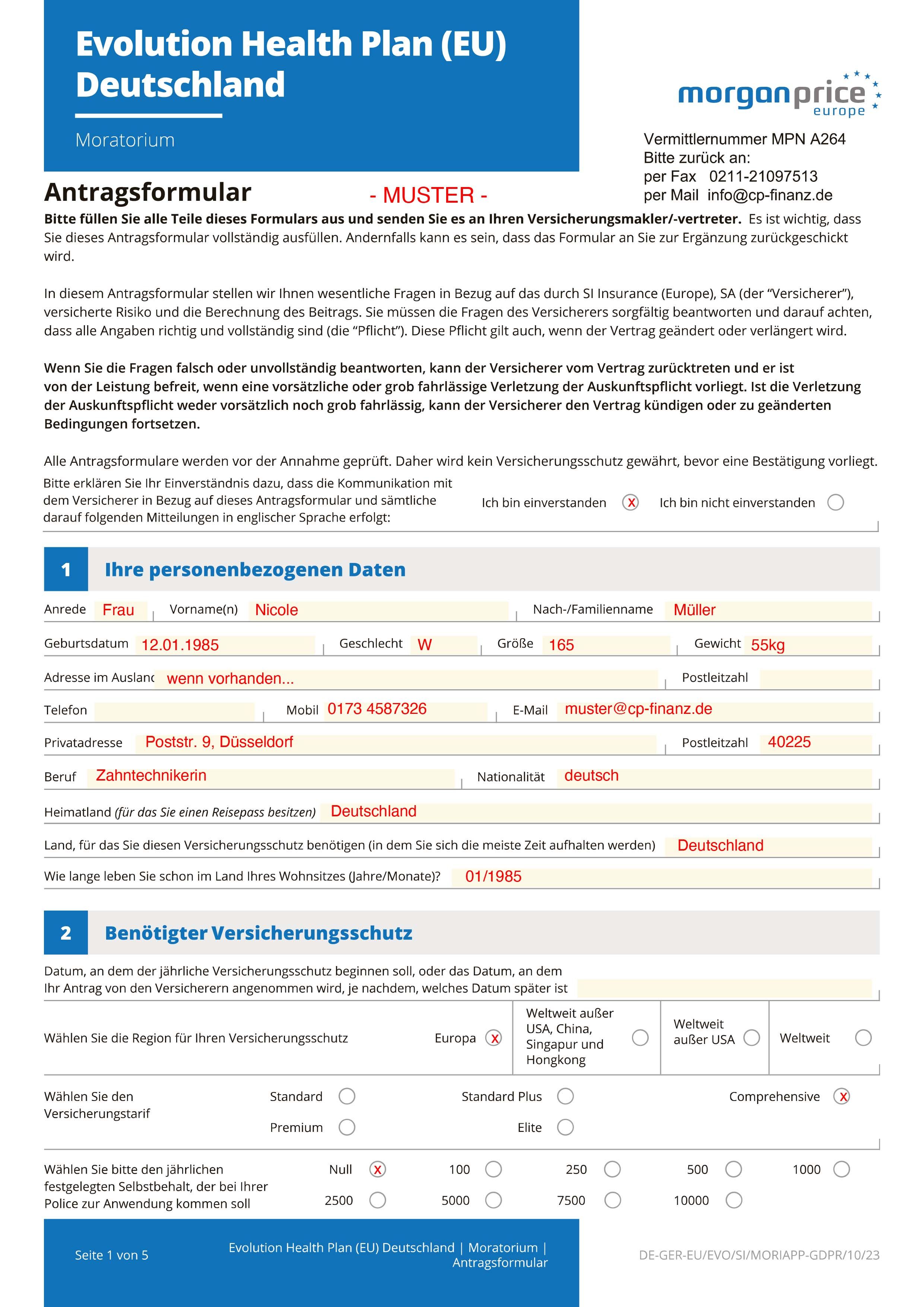 Sie haben die Möglichkeit, den Antrag direkt auf Ihrem Computer auszufüllen, und uns ohne Unterschrift per Mail zurück­zu­sen­den. Wir senden Ihnen dann den Antrag zur Unterzeichnung auf Ihrem Smartphone oder Tablet zurück. Gerne helfen wir Ihnen weiter falls Sie Fragen haben – oder schauen Sie sich den Muster­antrag an, den wir exemplarisch für Sie ausgefüllt haben: